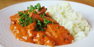 Pasta med fläskfilé, paprika, lök, grädde och riven ost